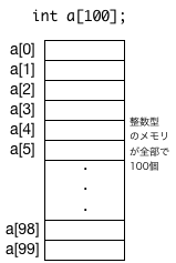 100個の要素から成る配列を宣言したら、おしまいの要素の番号は99である(図参照)