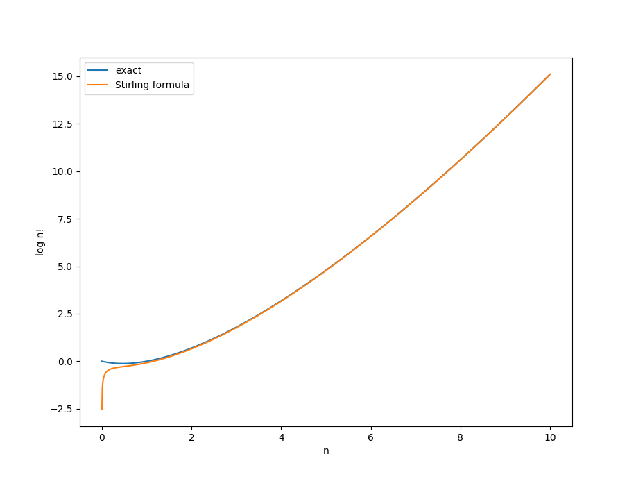 log_stirling = (n+0.5)*np.log(n) - n + 0.5*np.log(2*np.pi)