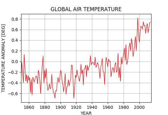 year_vs_temp = [ [1850,-0.373],[1851,-0.218],[1852,-0.228],[1853,-0.269],[1854,-0.248],[1855,-0.272],[1856,-0.358], [1857,-0.461],[1858,-0.467],[1859,-0.284],[1860,-0.343],[1861,-0.407],[1862,-0.524],[1863,-0.278], [1864,-0.494],[1865,-0.279],[1866,-0.251],[1867,-0.321],[1868,-0.238],[1869,-0.262],[1870,-0.276], [1871,-0.335],[1872,-0.227],[1873,-0.304],[1874,-0.368],[1875,-0.395],[1876,-0.384],[1877,-0.075], [1878,0.035],[1879,-0.230],[1880,-0.227],[1881,-0.200],[1882,-0.213],[1883,-0.296],[1884,-0.409], [1885,-0.389],[1886,-0.367],[1887,-0.418],[1888,-0.307],[1889,-0.171],[1890,-0.416],[1891,-0.330], [1892,-0.455],[1893,-0.473],[1894,-0.410],[1895,-0.390],[1896,-0.186],[1897,-0.206],[1898,-0.412], [1899,-0.289],[1900,-0.203],[1901,-0.259],[1902,-0.402],[1903,-0.479],[1904,-0.520],[1905,-0.377], [1906,-0.283],[1907,-0.465],[1908,-0.511],[1909,-0.522],[1910,-0.490],[1911,-0.544],[1912,-0.437], [1913,-0.424],[1914,-0.244],[1915,-0.141],[1916,-0.383],[1917,-0.468],[1918,-0.333],[1919,-0.275], [1920,-0.247],[1921,-0.187],[1922,-0.302],[1923,-0.276],[1924,-0.294],[1925,-0.215],[1926,-0.108], [1927,-0.210],[1928,-0.206],[1929,-0.350],[1930,-0.137],[1931,-0.087],[1932,-0.137],[1933,-0.273], [1934,-0.131],[1935,-0.178],[1936,-0.147],[1937,-0.026],[1938,-0.006],[1939,-0.052],[1940,0.014], [1941,0.020],[1942,-0.027],[1943,-0.004],[1944,0.144],[1945,0.025],[1946,-0.071],[1947,-0.038], [1948,-0.039],[1949,-0.074],[1950,-0.173],[1951,-0.052],[1952,0.028],[1953,0.097],[1954,-0.129], [1955,-0.190],[1956,-0.267],[1957,-0.007],[1958,0.046],[1959,0.017],[1960,-0.049],[1961,0.038], [1962,0.014],[1963,0.048],[1964,-0.223],[1965,-0.140],[1966,-0.068],[1967,-0.074],[1968,-0.113], [1969,0.032],[1970,-0.027],[1971,-0.186],[1972,-0.065],[1973,0.062],[1974,-0.214],[1975,-0.149], [1976,-0.241],[1977,0.047],[1978,-0.062],[1979,0.057],[1980,0.092],[1981,0.140],[1982,0.011], [1983,0.194],[1984,-0.014],[1985,-0.030],[1986,0.045],[1987,0.192],[1988,0.198],[1989,0.118], [1990,0.296],[1991,0.254],[1992,0.105],[1993,0.148],[1994,0.208],[1995,0.325],[1996,0.183], [1997,0.390],[1998,0.539],[1999,0.306],[2000,0.294],[2001,0.441],[2002,0.496],[2003,0.505], [2004,0.447],[2005,0.545],[2006,0.506],[2007,0.491],[2008,0.395],[2009,0.506],[2010,0.560], [2011,0.425],[2012,0.470],[2013,0.514],[2014,0.579],[2015,0.763],[2016,0.797],[2017,0.677], [2018,0.597],[2019,0.736] ]