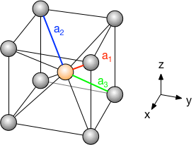 となり、これは(格子定数が2の)面心立方格子の基本並進ベクトルになっていることがわかる。