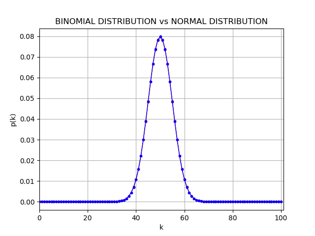 以下は、二項分布と正規分布をプロットして比較するPythonコードの例である: