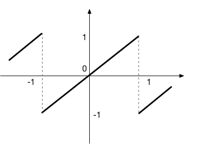 矩形波の例に倣って、のこぎり波(下図)をフーリエ級数で近似・表示してみなさい