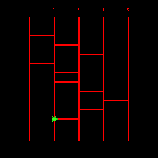 亀場を使って、自動生成したあみだくじを表示するコードを作成してみなさい。