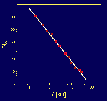 すなわちこの場合の海岸線のフラクタル次元はおよそDB≒1.27と