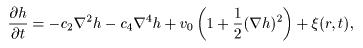 これは、外力ξを伴った蔵本・シバシンスキー(KS)方程式に他ならならない[14]。KS方程式で、パラメータ c2, c4に応じた時間・空間的な不安定が生じることはよく調べられているが、長波長領域での系の安定性は中立的で、外力項ξによって生じた凹凸が長時間記憶される効果が期待される。
