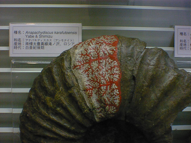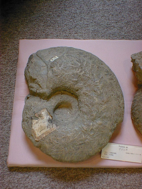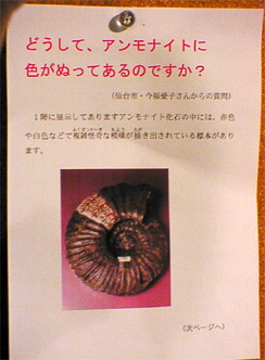 今年、集中講義やセミナーでお世話になった九州大学のNさんから突然メイルがあって、そこの職場のHさんが東北大に来られたときに、博物館でアンモナイト(ammonite)の化石の中(上?)に不思議な模様を見つけられたとのこと。あいにくカメラを持ち合わせていなかったので、写真に撮って欲しいとの依頼がありました。