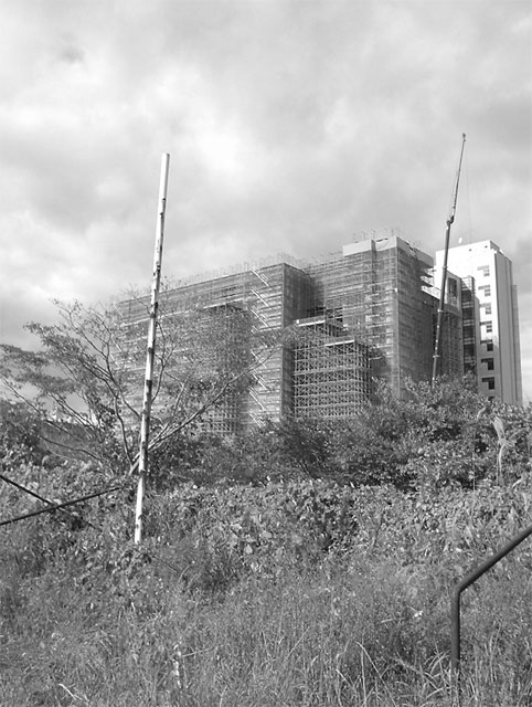 あまり気が乗らない用事があって,となりの学部まで歩いてでかけた。 ほんの15分ほどの距離だ。 ふと振り返ると,来春に完成予定の新しい研究棟が目に入る。