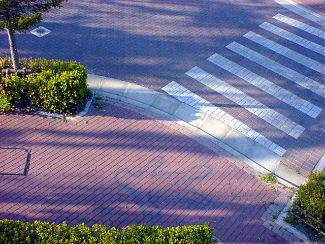 まだほとんど家が建っていない新しい(と言っても造成されてから数年にはなる)住宅団地の交差点には,中学生のイタズラか,事故現場のような人型が描いてあった。
