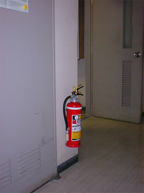 そんな人たちの目に、ほぼ確実に、とまっていない物体、それが消火器だ。 消火器は非常時に目立ちやすいように彩色や設置場所が工夫されている(はず)にもかかわらず、僕も写真を撮るまでは、それがそこにある、ということが意識に上らなかった。 不思議といえば不思議である。