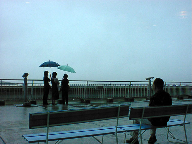 送迎デッキは,現代的・無機質的な空港の施設のなかにあって,20年くらい時代に取り残されたような,ほとんど唯一と言ってよい情緒的な空間だ。 立派なロビーとは対照的に,いかにも安っぽいベンチと,うなだれた望遠鏡。 なんだかそこに居る人たちまでが「古びて」見える。