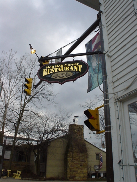 日本から学生が来ていると聞いて、インディアナ大学の物理で勉強している大学院生が、この辺りの観光に付き合ってくれた。 車で30分ほどのところにある観光地でぶらぶらと買い物などをしてまわる。 じきに腹が減ったので、この小さな町では定番らしい食堂で早めの昼食。 店の名前は Hob Nob Corner という。 学生に「何ていう意味ですか?」と尋ねられたけれども、もちろん知るはずもない。