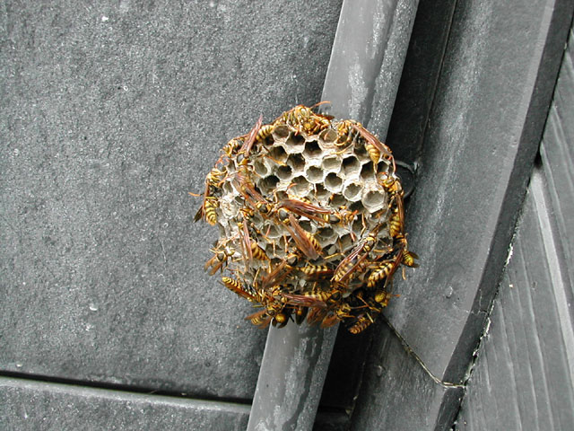 知らない間に,道路をはさんで斜め向かいの家の周りに足場が組まれ,外壁塗装などの「リホーム」が始まった。 工事の最中,関係者がわが家の軒に蜂の巣があるのを見つけ,教えてくれた。 もっと正確に言うと,我が家は日中留守だったので,隣家のお年よりに工事関係者が話しをして,その翌朝,そのお年よりから妻に情報が伝えられた。