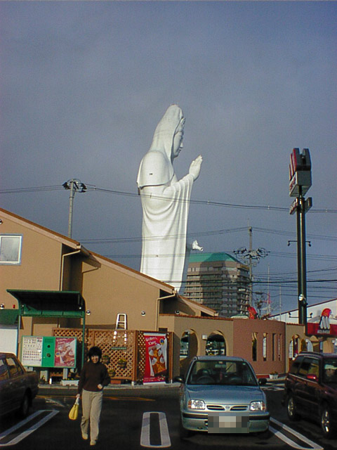 大きさのことはさておき、ここでは観音さまの色合いについて少し考えてみたい。白というのは何ものにも染まっていないという点では最も自己主張のない色だし、それは(実はよく知らないけれども)観音さまが宗教的に意味するところともよくマッチするのかもしれない。さらに、建造のためのコストも安上がりなのかもしれない。