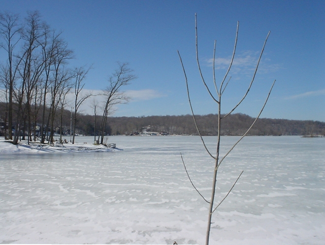 湖は一面分厚い氷に覆われていて、どこまでが岸で、どこまでが水面なのか、判然としないくらいだ。 学生のほうは氷の上を歩きたくて仕方がない様子だったが、なんだかんだと諭して、岸からほんの少し先までで思いとどまらせた。 万一「どぼん」ということになったら、どうしようもない。