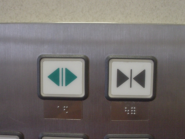 ユニバーサルデザインを謳った最近のエレベータは、記号と一緒に「ひらく」、「とじる」が併記してあったり、ボタンの形状にも工夫がしてあったりと、たかがボタンひとつ取っても、未だに発展途上のようだ。