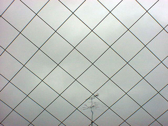 二階の天窓越しに南の空を見上げると、隣の家のアンテナが雨に滲んでいた。