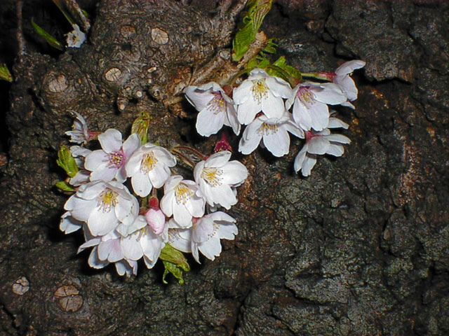 ときに植物の姿はグロテスクである。 黒ずんだ桜の幹は大きくへし曲がり、表面は穴やこぶだらけだ。 白っぽい場所があるので近づいて見ると、その小さなこぶのところどころに、内部の生命が噴出するかのように花が咲いている。 よく見ると、花を咲かせ、枝を伸ばし、そしてまた切り取られた無数の跡。 静かで、それでいて強い、意志のようなものを感じる。