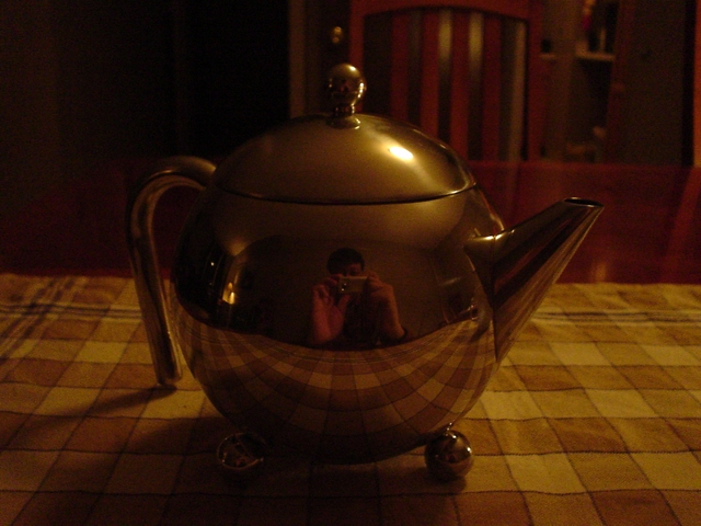 テーブルの上の、その日に買ったティーポットを写してみた。