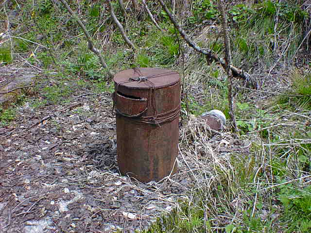 それで、ぶらぶらと河原のほうに来てしまった。子供の頃に歩いたことのあるような道(らしきもの)があったので分け入ってみる。草や木が生い茂って、普段は全く人気のなさそうな様子だ。100mも歩くか歩かないうちに、不思議な物体を発見した。コンクリートが打ってあるので、かなり昔、ここに何か建造物があったようだ。そのコンクリートの上に、高さ30cmくらいの円筒状の金属が「設置」されている。
